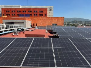 La participación de Fundación IMSS, en el desarrollo de proyectos de sostenibilidad y cuidado ambiental, permitió la instalación de un sistema solar fotovoltaico integrado por 186 paneles en la Unidad Médica de Alta Especialidad Hospital de Cardiología No. 34 “Dr. Alfonso J. Treviño Treviño” del Centro Médico Nacional del Noroeste del IMSS, en la Ciudad de Monterrey; lo que va a permitir reinvertir en equipamiento e infraestructura hospitalaria.